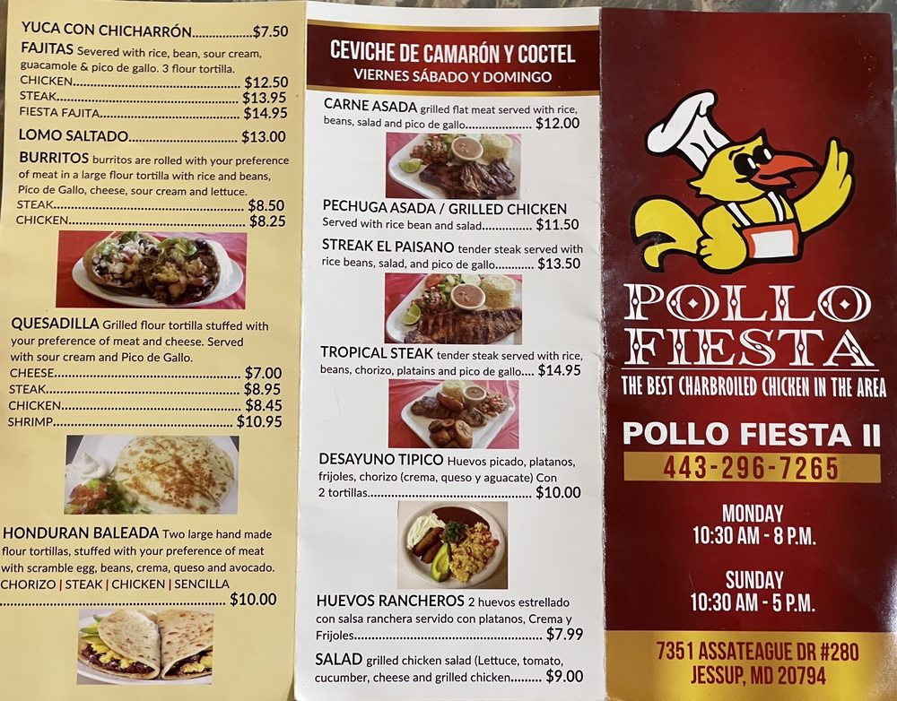 Pollo Fiesta is a hidden gem located in Jessup, MD, offering delicious and authentic Mexican cuisine. With a focus on flavor and quality, their dishes are bursting with taste and affordable for all. Customers rave about the shrimp rice bowl, perfectly blackened shrimp paired with fresh and flavorful rice, topped with a delightful verde sauce. The gluten-free rotisserie chicken is a hit among those with dietary restrictions, hand-rubbed with a special seasoning blend. The yucca and plantains are crispy and full of flavor, while the fried rice and fried plantains are also highly recommended. The friendly service and great Latin desserts, such as tres leches and flan, make Pollo Fiesta a must-visit spot for those craving authentic Mexican flavors with a touch of Peruvian grandma love. Enjoy a family-friendly environment with ample free parking and dine-in options.